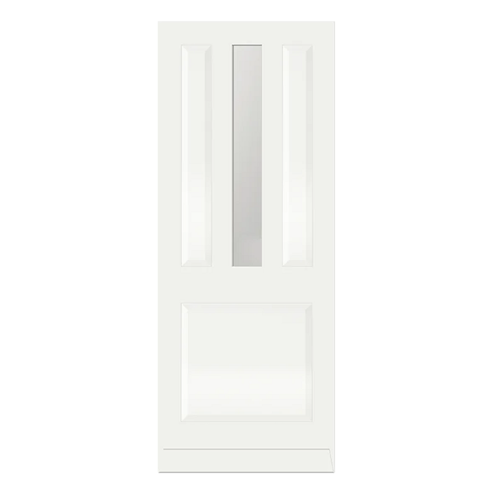 Voordeur van 100% duurzaam plaatmateriaal met een kern van hoogwaardig XPS, een Tricoya toplaag voor een duurzame afwerking en met 2 geïntegreerde aluminium stabiliteitschermen. Bij uitstek geschikt voor zéér extreme situaties. Ook verkrijgbaar in een deurdikte van 54 mm met een kaderprofilering ten behoeve van een optimale kierafdichting. Voorzien van glasopening met vaste glassponning (VaSpo) aan buitenzijde en glaslatten aan binnenzijde, inclusief gemonteerd HR++ blank glas. Leverbaar in deurmaten tot 950 x 2350 mm, grotere afmetingen mogelijk tegen meerprijs. Behandeld met een witte of grijze grondverf, klaar voor de kleur van jouw dromen.