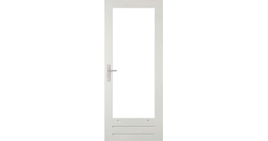 Duurzaam hardhouten buitendeuren met 12 cm brede stijlen. De cijfers in de deurnamen staan voor de hoogte van de borstwering in centimeters.