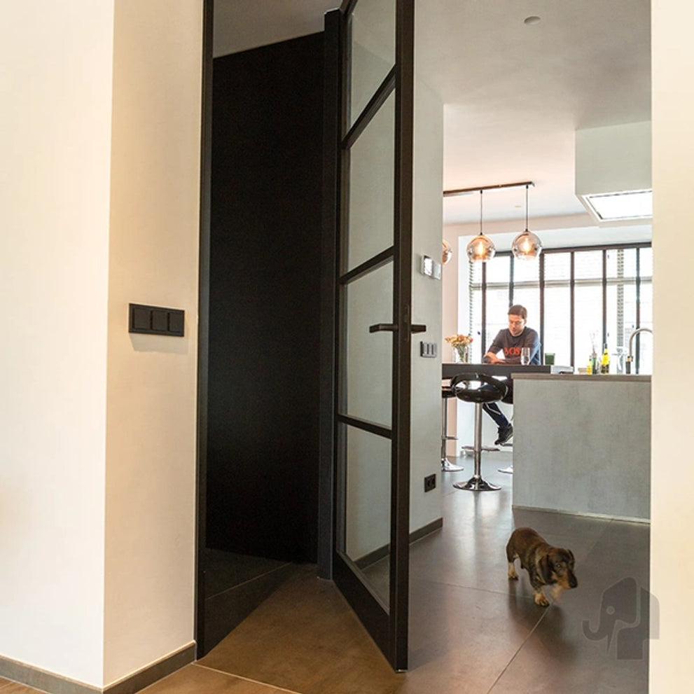Om de Porta Alta helemaal af te maken, kun je bij deze deuren ook gebruik maken van onze zwarte verdekte Swing scharnieren. Denk wel aan een extra scharnier gezien de hoogte van de Porta Alta deuren.