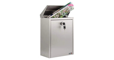 De solide brievenbus is gemaakt van RVS.