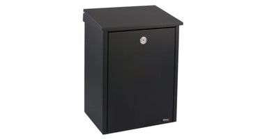 De solide brievenbus is gemaakt van gegalvaniseerd staal, waarna behandeld met een sterke zwarte poedercoating.