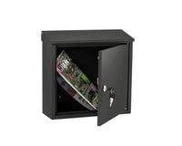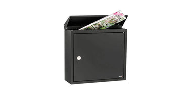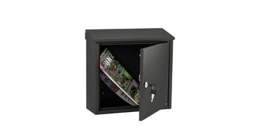 De solide brievenbus is gemaakt van gegalvaniseerd staal, waarna behandeld met een sterke zwarte poedercoating.