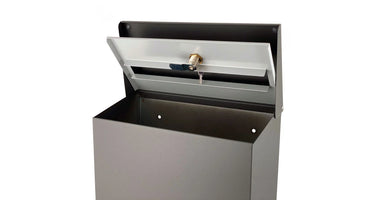 Postinworp via de bovenzijde en uitname via de afsluitbare klep onder de inworpklep.