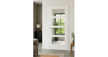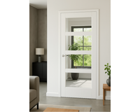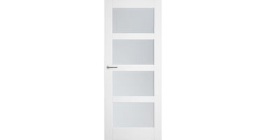 Strakke en moderne uitstraling: met vier ruime ruiten van blank glas creëert deze deur een open, lichte sfeer en geeft je interieur een frisse uitstraling zonder teveel prijskaartje.