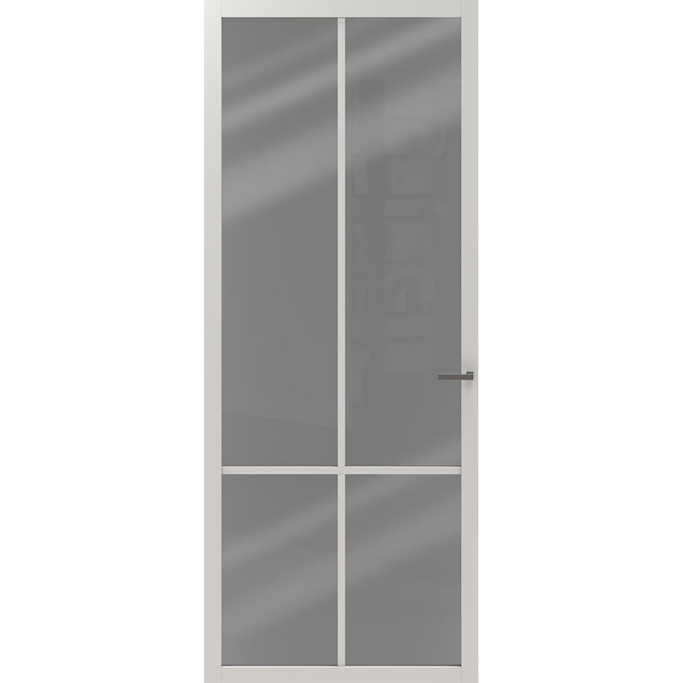 De CanDo Elegant Original ELG1-2E05 heeft een minimalistisch design met zeer dunne stijlen en dorpels. Deze moderne binnendeur heeft gemonteerd glas met een 4-ruits roedeverdeling en wordt zwart voorbehandeld geleverd. De smalle stijlen van deze deur vragen om speciaal deurbeslag. Dit heeft CanDo voor jou ontwikkeld. Ook worden de benodigde frezingen voor je gedaan. Deze deur bestel je dus altijd met een bijpassend deurbeslagpakket.