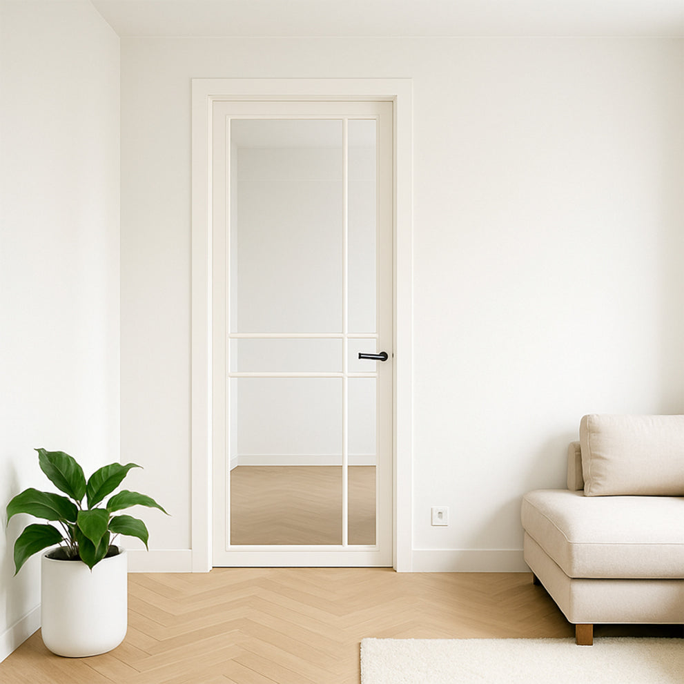 De Cover Glass is een binnendeur met een volspaan kern. De deur is afgewerkt met een krasvaste EBC-lak, die jarenlang meegaat. Verkrijgbaar in vier eigentijdse EBC-kleuren.