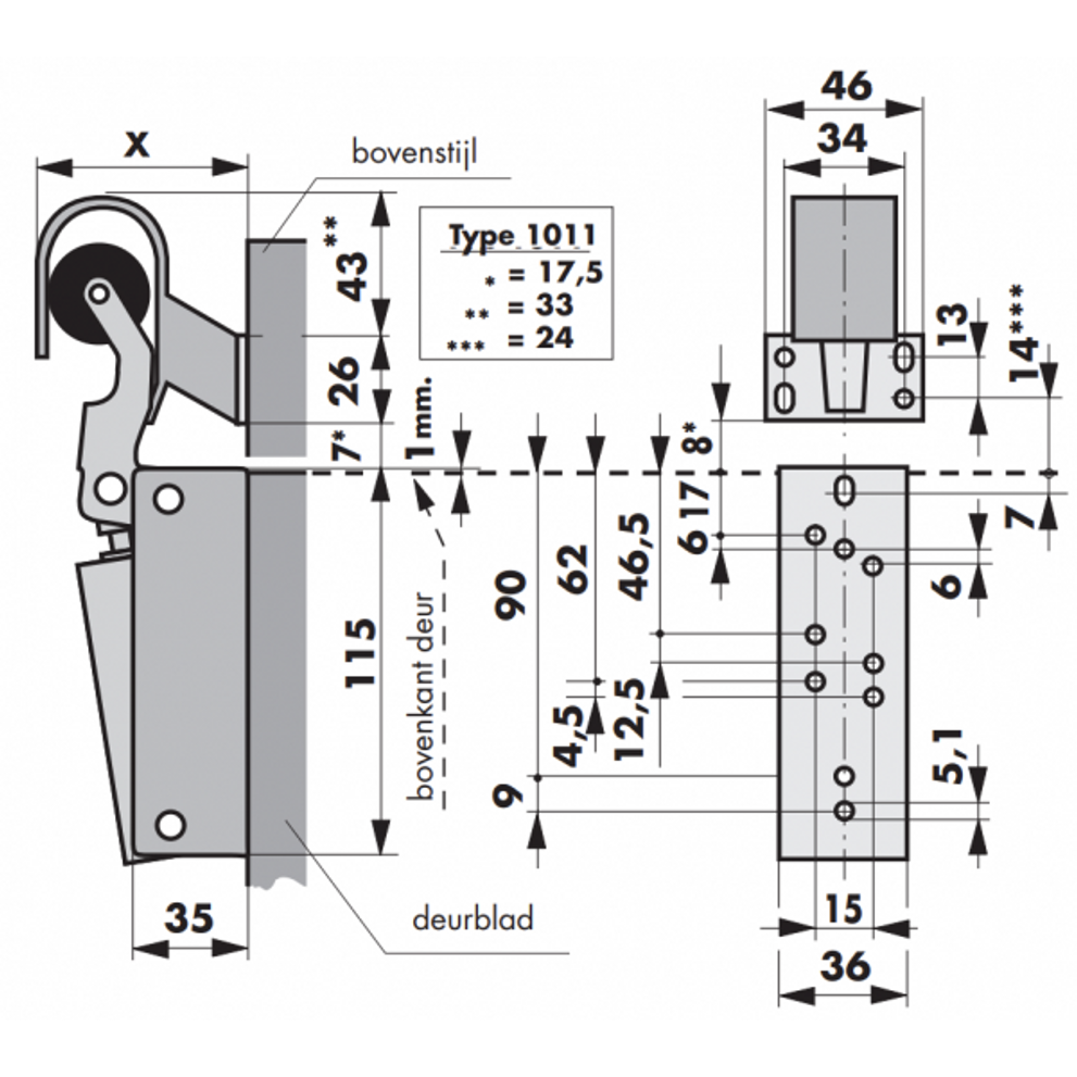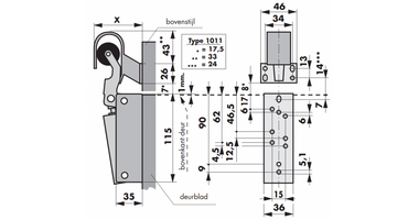 Deze standaard deuropvanger vangt ongeveer gelijkliggende (stompe binnendeuren) of deuren met een opdek tot 14mm op. Op het laatste moment worden de deuren hydraulisch gecontroleerd en geruisloos opgevangen of stevig gesloten gehouden. Een groot voordeel is dat de deur in iedere gewenste positie open kan blijven staan. Door toepassing van een deuropvanger wordt de kans op vingers tussen de deur aanzienlijk verkleind omdat de deur rustig wordt dichtgetrokken.