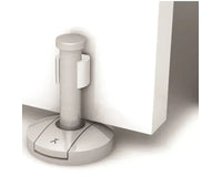 De Exceptor® kierstandhouder wordt namelijk achter de voordeur in de vloer gemonteerd. Wanneer er onverwachts aangebeld wordt druk je snel en eenvoudig met je voet, wandelstok of kruk op de ontspanknop en de blokkeerpen schiet omhoog. De deur kan nu met een veilig gevoel tot op een kiertje worden geopend om de bezoeker te woord te staan. Is het veilig? Dan druk je de pen gemakkelijk met je voet weer terug en laat je iemand met een goed gevoel binnen.