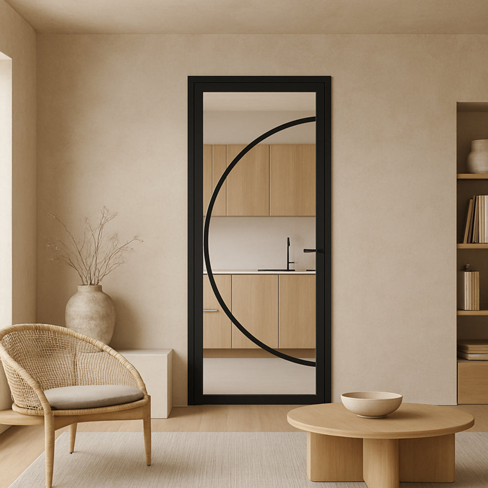 De Elegant Flow geeft een speelse twist aan het strakke design van de Elegant deurenserie. Door de toevoeging van ronde en organische roedes krijgt deze deur een zachtere en dynamische uitstraling, zonder in te leveren op het industriële karakter.