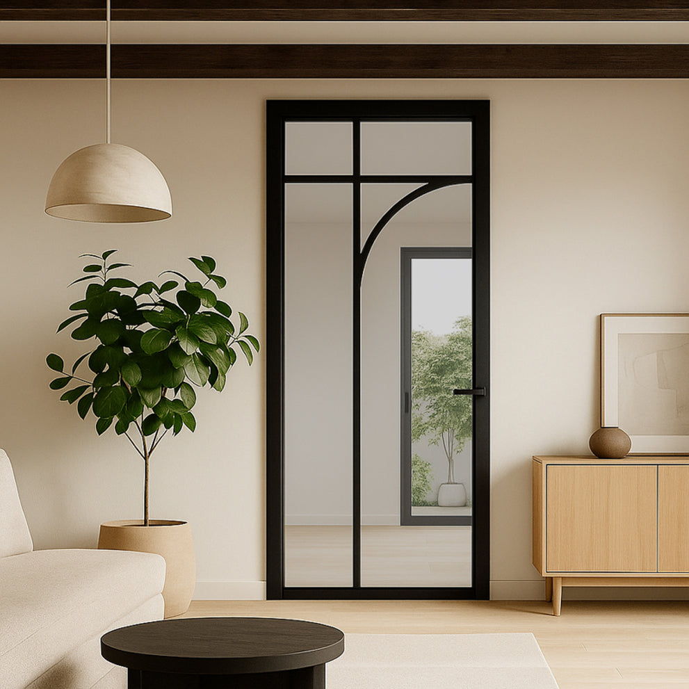 De Elegant Flow geeft een speelse twist aan het strakke design van de Elegant deurenserie. Door de toevoeging van ronde en organische roedes krijgt deze deur een zachtere en dynamische uitstraling, zonder in te leveren op het industriële karakter.