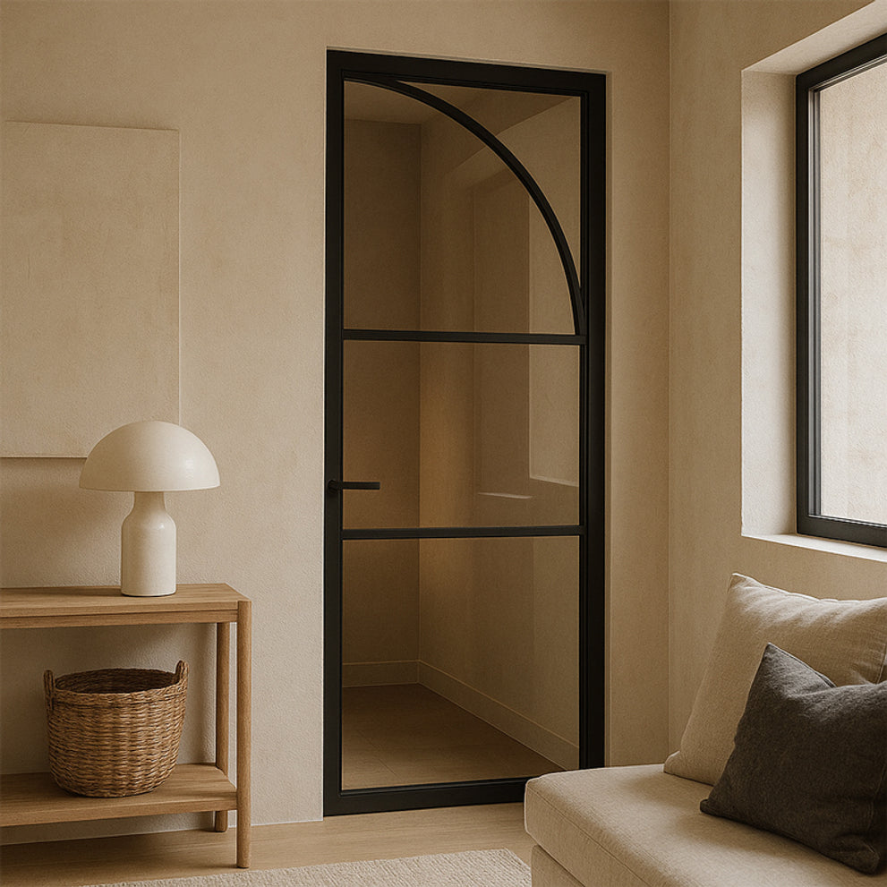 De Elegant Flow geeft een speelse twist aan het strakke design van de Elegant deurenserie. Door de toevoeging van ronde en organische roedes krijgt deze deur een zachtere en dynamische uitstraling, zonder in te leveren op het industriële karakter.