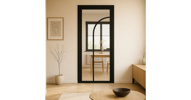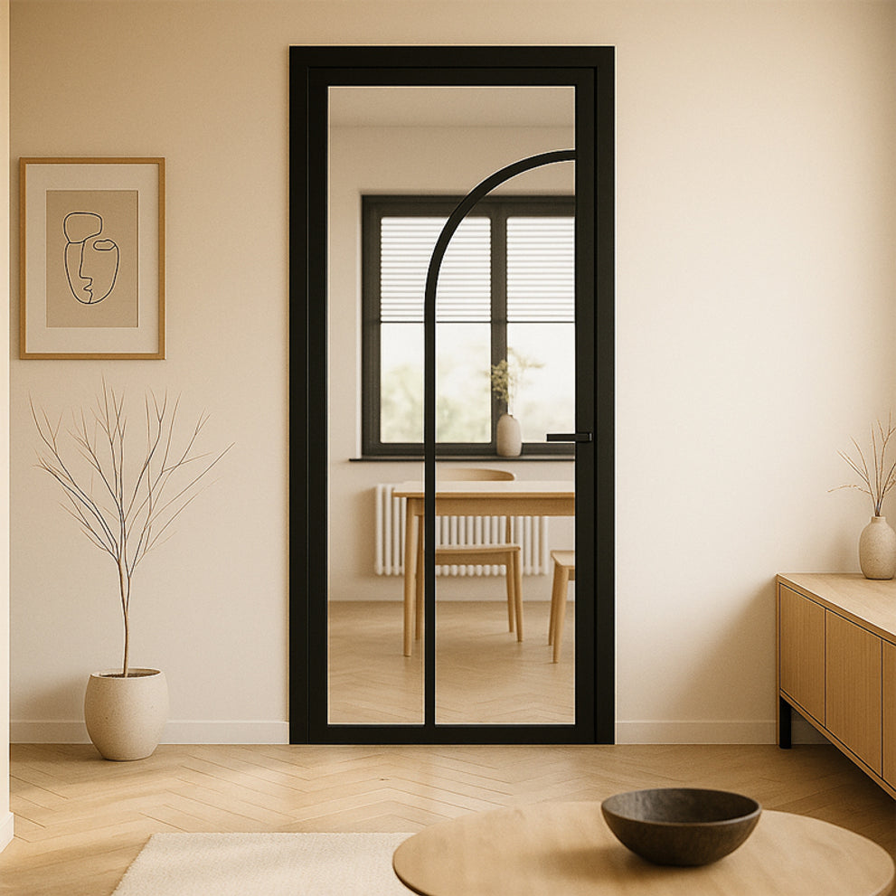 De Elegant Flow geeft een speelse twist aan het strakke design van de Elegant deurenserie. Door de toevoeging van ronde en organische roedes krijgt deze deur een zachtere en dynamische uitstraling, zonder in te leveren op het industriële karakter.