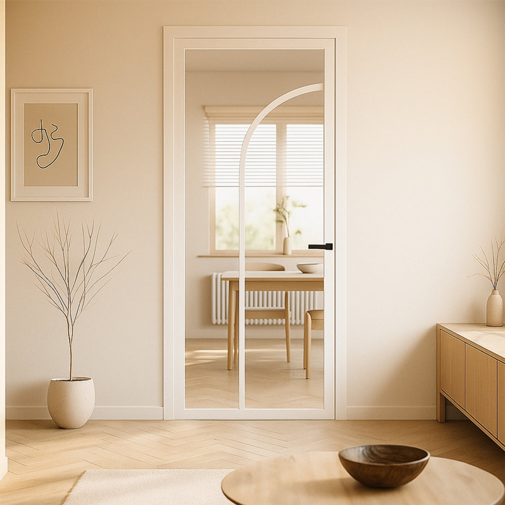 De Elegant Flow geeft een speelse twist aan het strakke design van de Elegant deurenserie. Door de toevoeging van ronde en organische roedes krijgt deze deur een zachtere en dynamische uitstraling, zonder in te leveren op het industriële karakter.