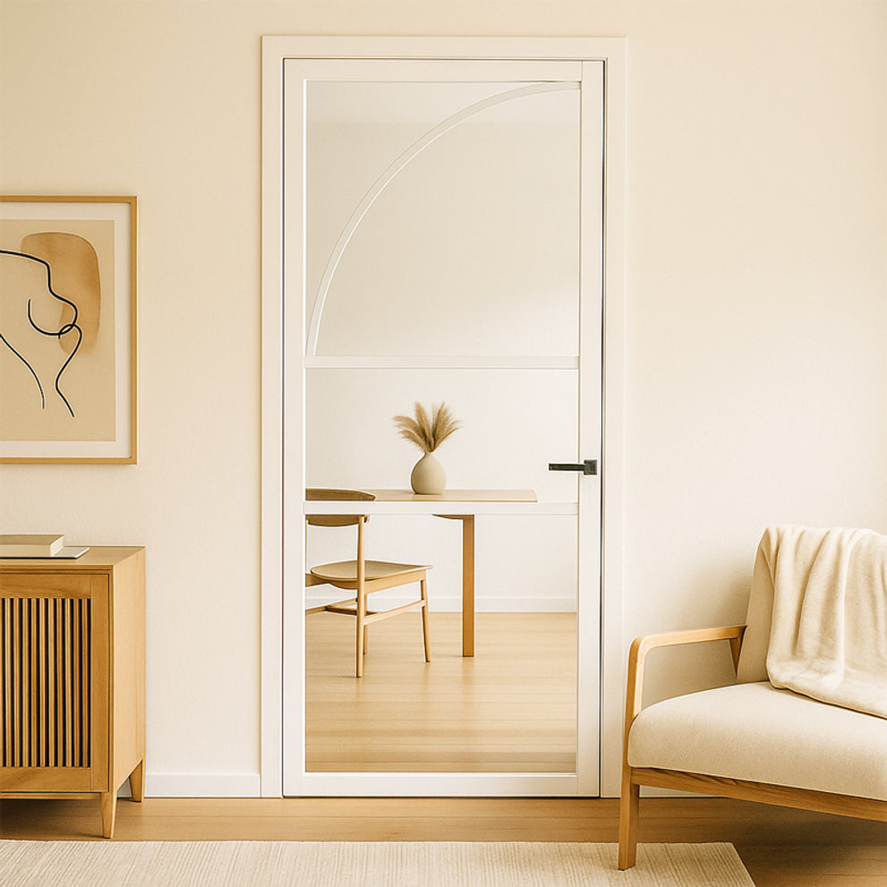 De Elegant Flow geeft een speelse twist aan het strakke design van de Elegant deurenserie. Door de toevoeging van ronde en organische roedes krijgt deze deur een zachtere en dynamische uitstraling, zonder in te leveren op het industriële karakter.