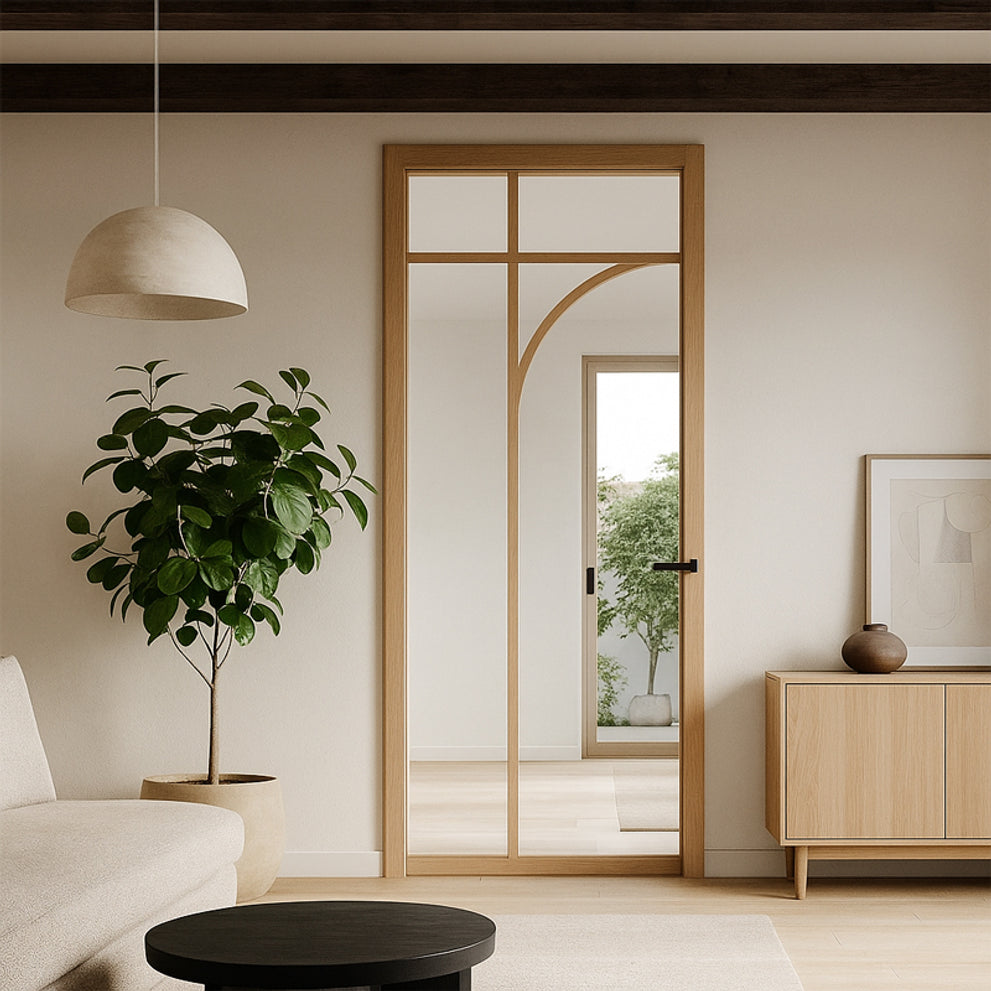 De Elegant Flow geeft een speelse twist aan het strakke design van de Elegant deurenserie. Door de toevoeging van ronde en organische roedes krijgt deze deur een zachtere en dynamische uitstraling, zonder in te leveren op het industriële karakter