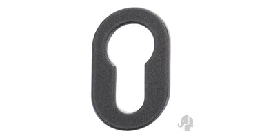 De Ibiza zwarte cilinderrozet is een ovaal mini-rozet met een ronde boring. Gepoedercoat. Het formaat is 28mm breed en 46mm hoog