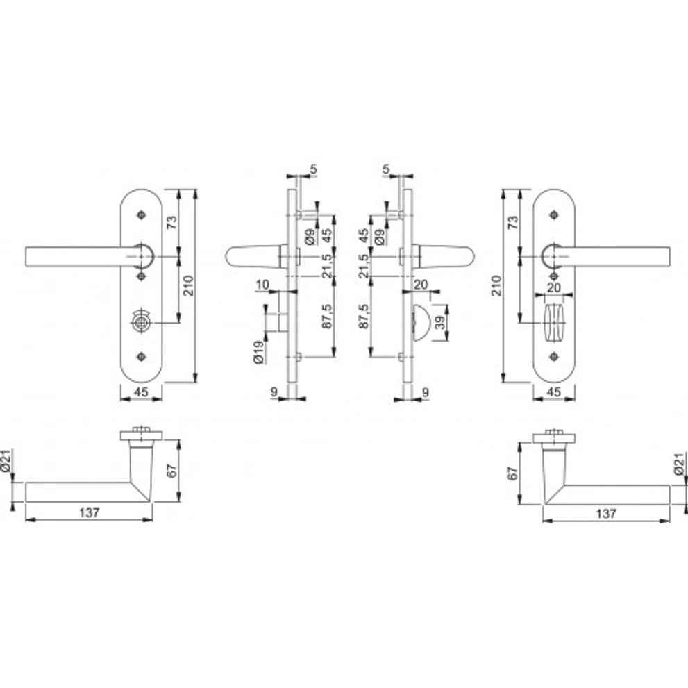 Hoppe roestvast stalen binnendeur langschild beslag voor toilet- en badkamer. Dit product wordt geleverd met een pc maat van 63 of 72 mm.