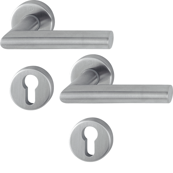 HOPPE Amsterdam Binnendeurbeslag Rozettengarnituur E1400Z/42KV/42KVS PC RVS DD:37-42mm wordt compleet geleverd met RVS Deurkruk, Krukrozetten en Cilinderrozetten. De Rozetten worden geleverd met de benodigde bevestigingsmiddelen voor een deurdikte van 37-42mm.