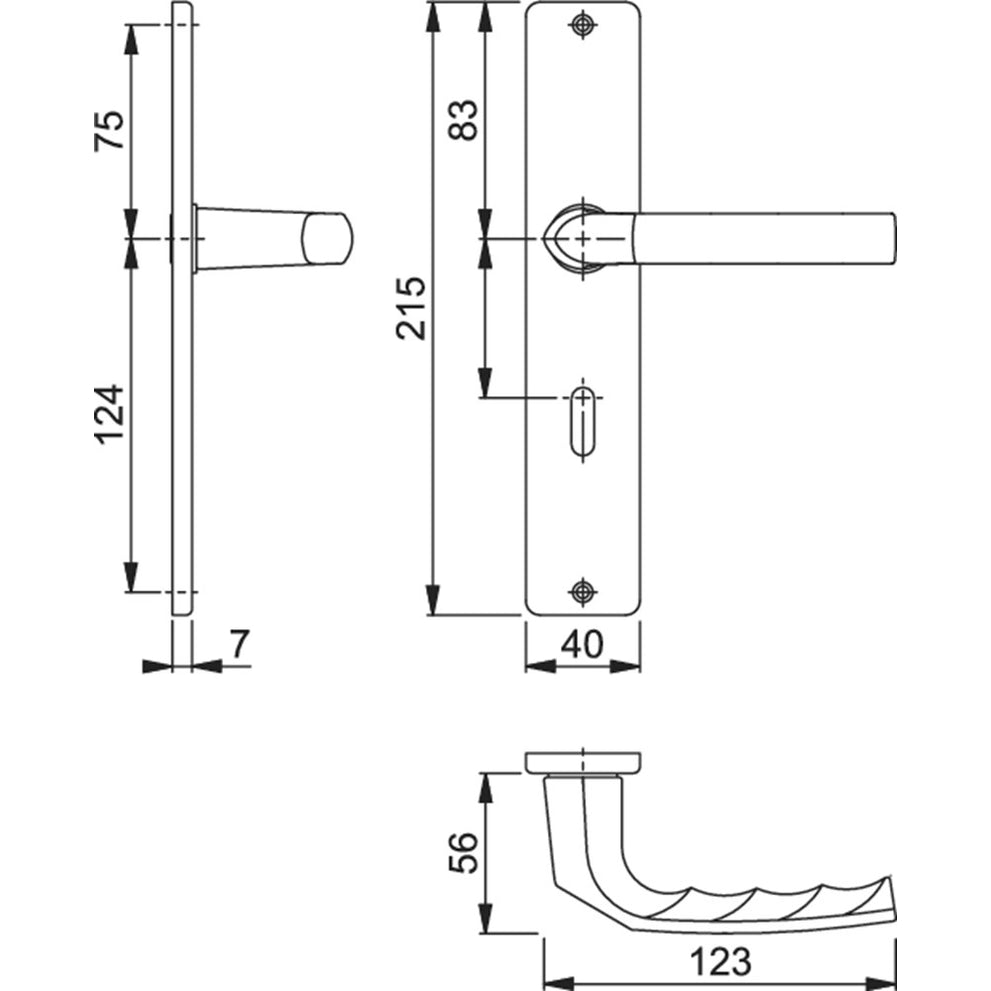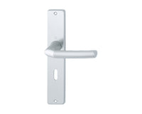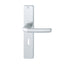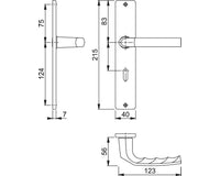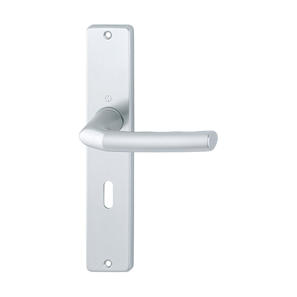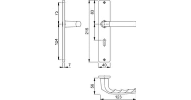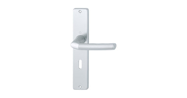 Dit Hoppe langschild heeft een sleutelgat 56 mm plaat. Er zit wel een gat in voor de deurkruk in. Bij dit schild wordt een Birmingham deurkruk meegeleverd. De maat van het schild is 215 x 40 mm. Het schild kun je het best monteren met patentboutjes die je ook bij ons kunt bestellen. Ook vol staat een montage met zelftappende schroeven. De kleur van het schild is F1 zilvergrijs.