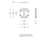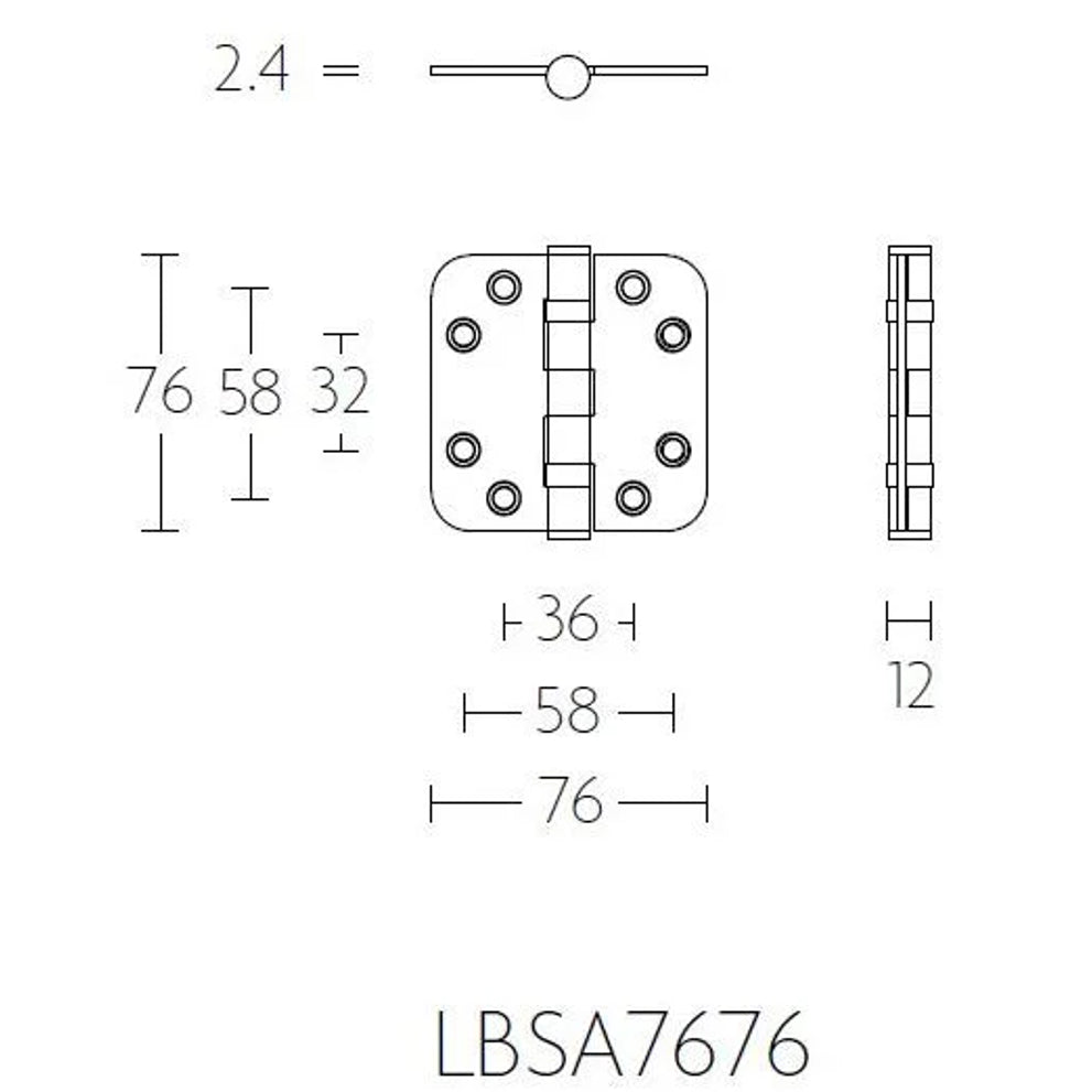 Dit kogellagerscharnier heeft ronde hoeken. De maat van dit scharnier is 76 x 76 mm en de dikte 2.4 mm. Het materiaal is RVS met een witte coat. RAL 9003