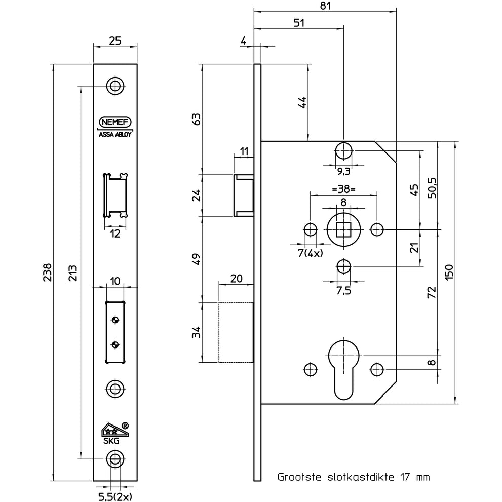 Veiligheid dag en nacht cilinderslot 4139/17 Nemef.