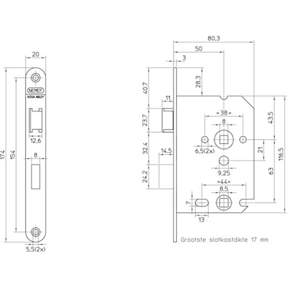 Nemef toilet-badkamer slot 1264/17 met rvs voorplaat