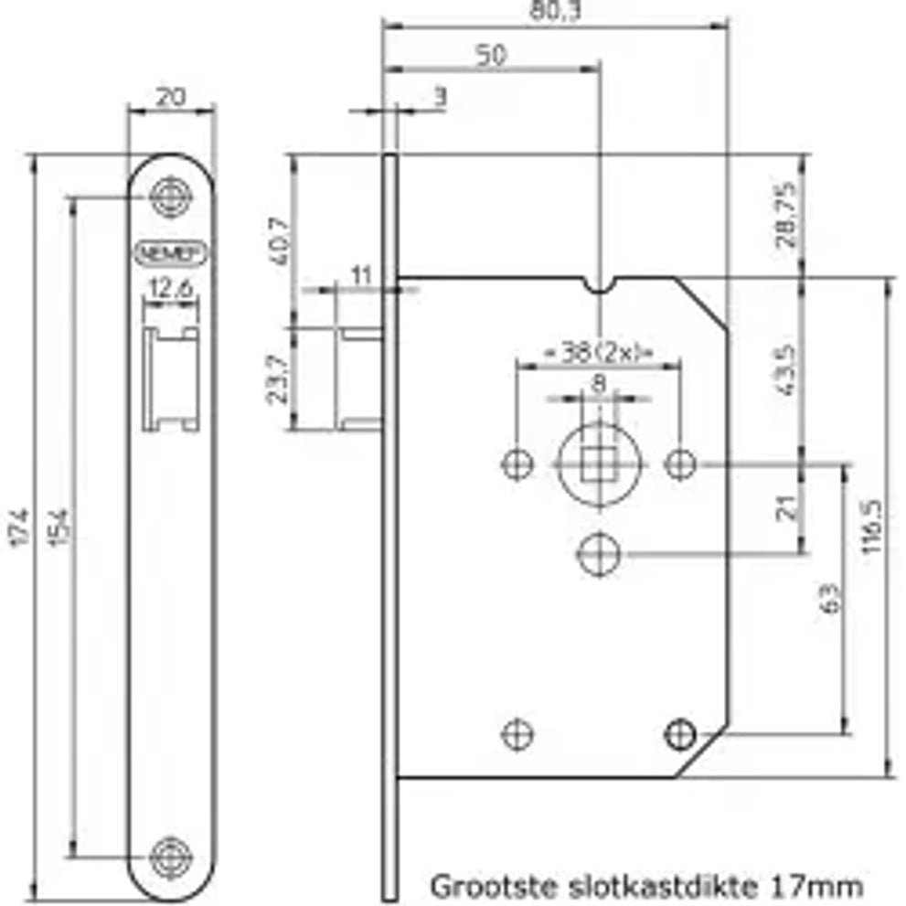 - Afmeting slotkast (HxBxD):117x80x17 mm