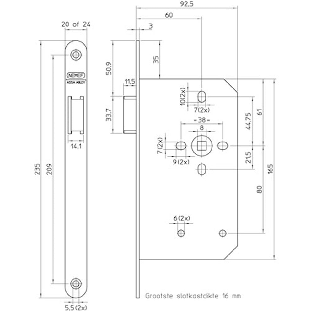 Nemef loopslot 635 met witte voorplaat Din rechts 1 + 3
