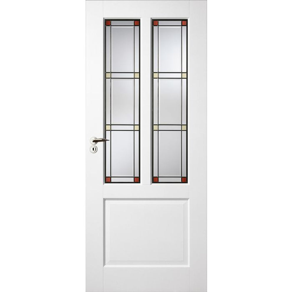 SKS 1240 met glas in lood is een binnendeur uit de serie Accent. Deze moderne, karakteristieke binnendeur komt in ieder interieurtype goed tot zijn recht en is te gebruiken voor verschillende ruimtes in huis. De binnendeuren uit de serie Accent behoren tot de best verkochte paneeldeuren in Nederland.