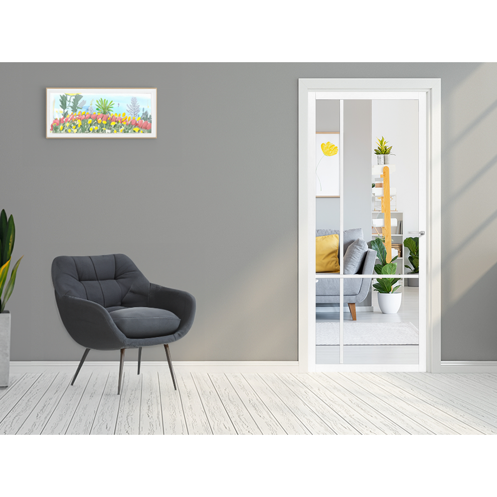 Skantrae SSL 4407 wordt gekenmerkt door zijn smalle stijlen die elkaar kruisen. De glasdeur staat schitterend als woonkamerdeur, gangdeur of keukendeur. Laat de deur inblenden in de ruimte door te kiezen voor deurbeslag en glassoort passend bij jouw interieur. Extra mooi in combinatie met bijpassende paneeldeur SSL 4057