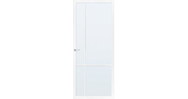 Als je op zoek bent naar een witte glasdeur in industriële stijl, dan ben je bij SSL 4408 aan het goede adres. Deze steellook deur heeft smalle stijlen die elkaar kruisen in het midden, wat zorgt voor een symmetrische vormgeving. Combineer deze glasdeur samen met bijpassende dichte deur SSL 4057