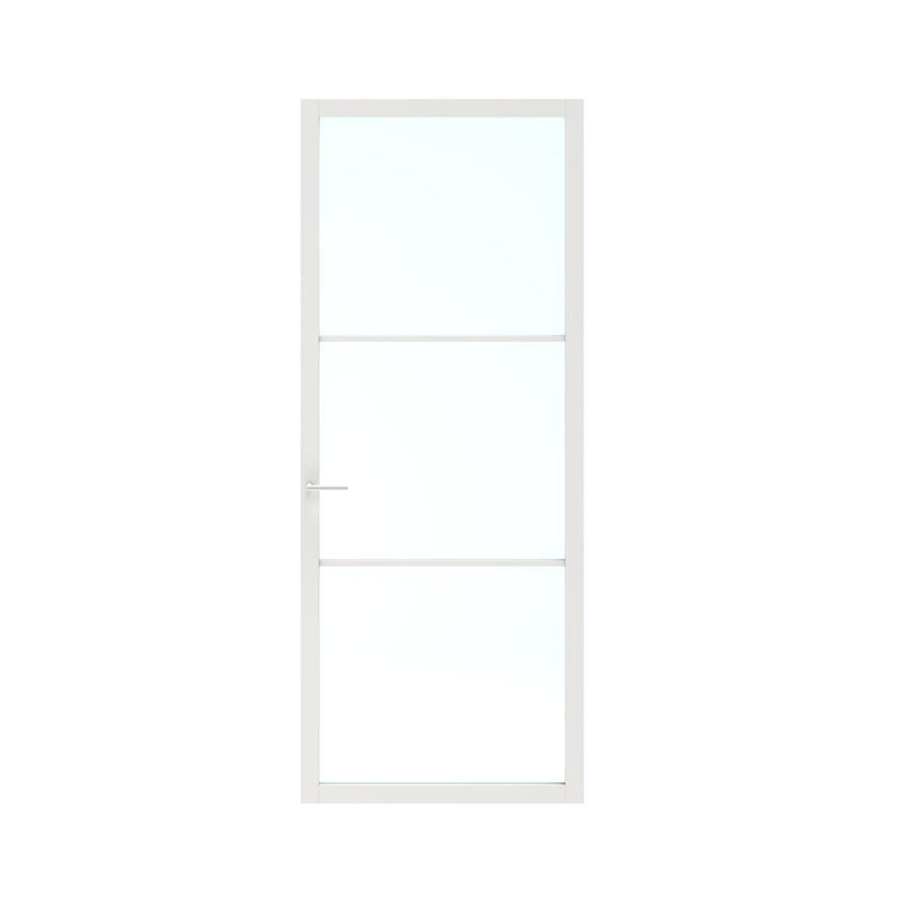 Deze deuren zijn 39 mm dik en worden geleverd met gemonteerd 6 mm veiligheidsglas. Voor zowel de paneel- als de glasdeuren geldt dat er geen glaslatten zijn.