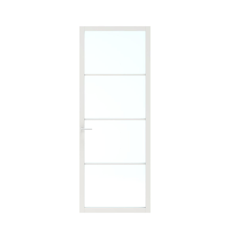 De Skantrae SSL 4604 20 mm Roedes Blank glas Slimline binnendeur heeft haakse profielen aan de deurstijlen en roeden die samen met het veiligheidsglas zorgen voor een super trendy industriële uitstraling zoals alle deuren uit de collectie