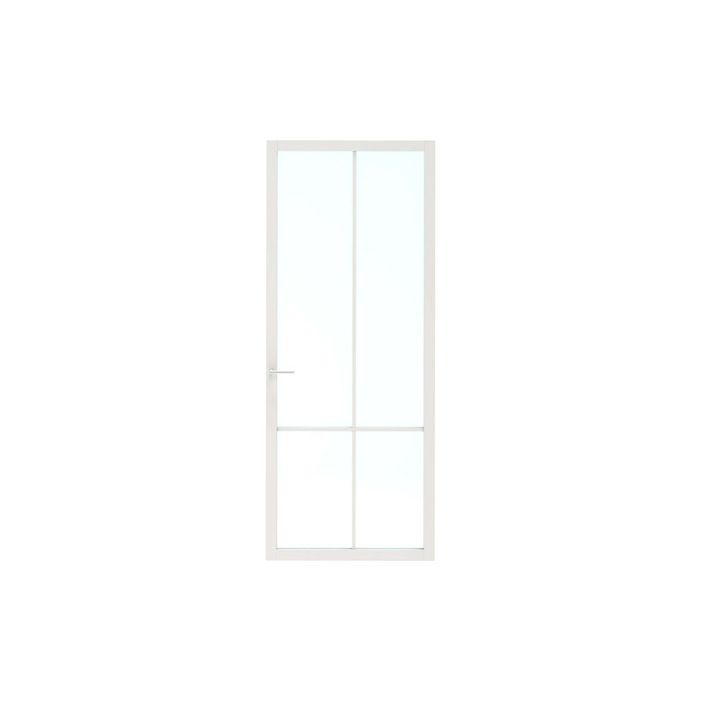 De Skantrae SSL 4608 20 mm Roedes Blank glas Slimline binnendeur heeft haakse profielen aan de deurstijlen en roeden die samen met het veiligheidsglas zorgen voor een super trendy industriële uitstraling zoals alle deuren uit de collectie.