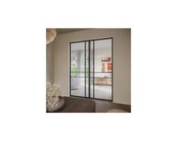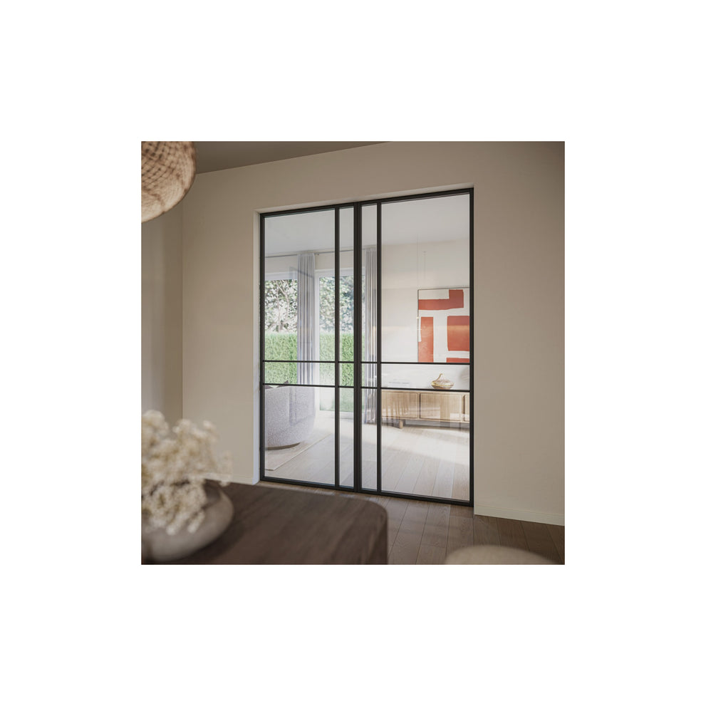 Deze deur is toepasbaar als enkele of dubbele schuifdeur waarbij de verticale verhoogde roede aan de binnenkant dient als greep. Kies voor het bijpassende schuifdeursysteem Lima XS in zwart of aluminium om je deur compleet te maken.