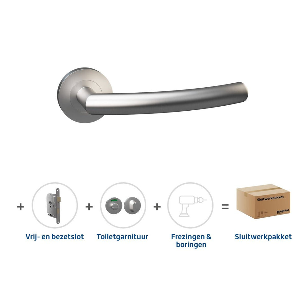 Het Corvus RVS sluitwerk met toiletslot past bij zowel de moderne interieurs als bij een meer klassieke inrichting. Het sluitwerk heeft een geborstelde finish en de deurkruk ligt, dankzij de vorm, prettig in de hand.