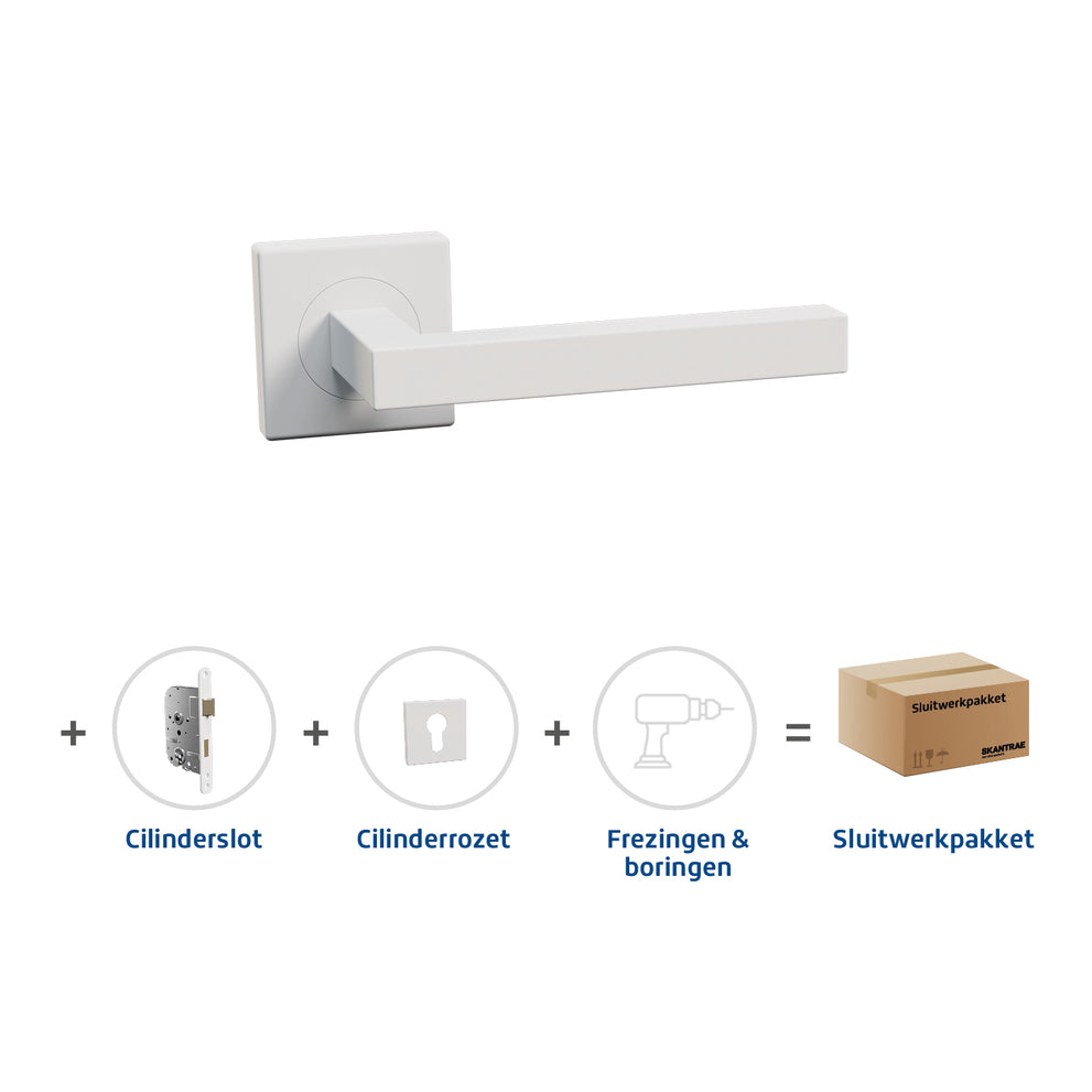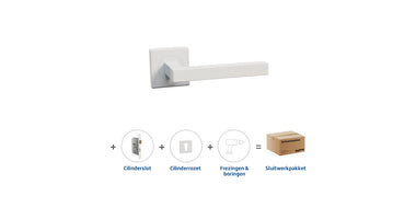Deurkruk, slot en garnituur zijn voorzien van dezelfde stijlvolle witte poedercoating en maken van jouw deuren een echte eyecatcher.