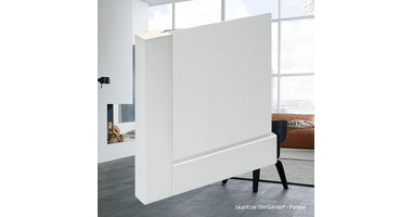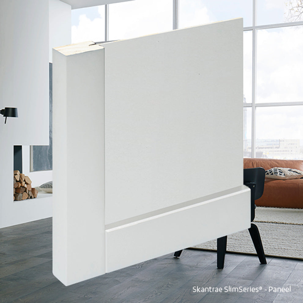 De Skantrae SSL 4811 is een stijlvolle, witte binnendeur uit de SlimSeries lijn, ontworpen om naadloos aan te sluiten bij een modern en minimalistisch interieur. Het ontwerp kenmerkt zich door een volledig vlak paneel en strakke, haakse profielen, wat zorgt voor een rustige en eigentijdse uitstraling. De afwezigheid van glaslatten versterkt de strakke, naadloze afwerking van de deur.