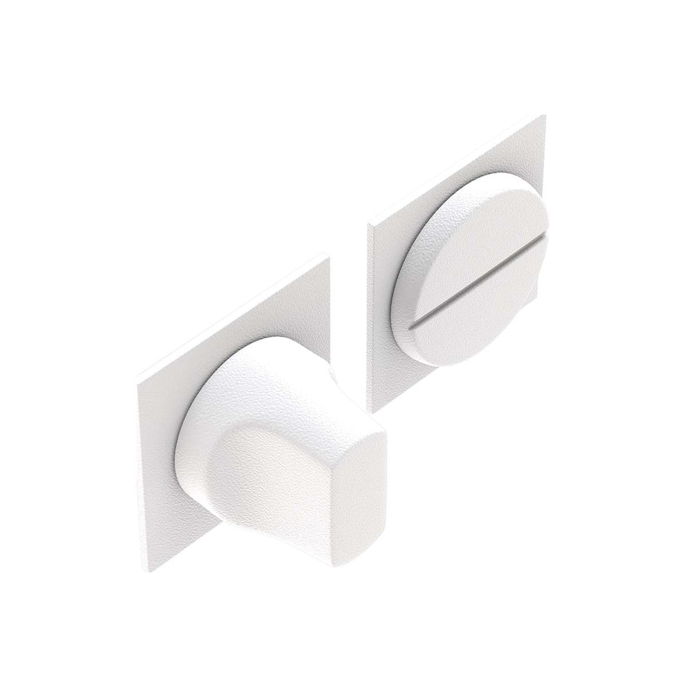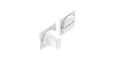 Garnituur uit onze Quadrate hardware familie in wit, zwart, RVS of mat messing. Verkrijgbaar in regular of minimal. Beschikbaar als sleutelrozet, cilinderrozet en toiletgarnituur.