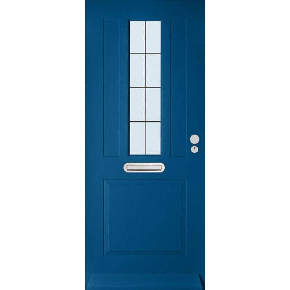 De voordeuren uit de serie Elegance NEXT hebben een rijke uitstraling. Deze deuren herken je aan de klassieke vormgeving en elementen zoals de profilering aan zowel de buiten- als de binnenkant van de deur, de (zwarte) roosters en het glas-in-lood. Dit betreft deurmodel SKN 2726.