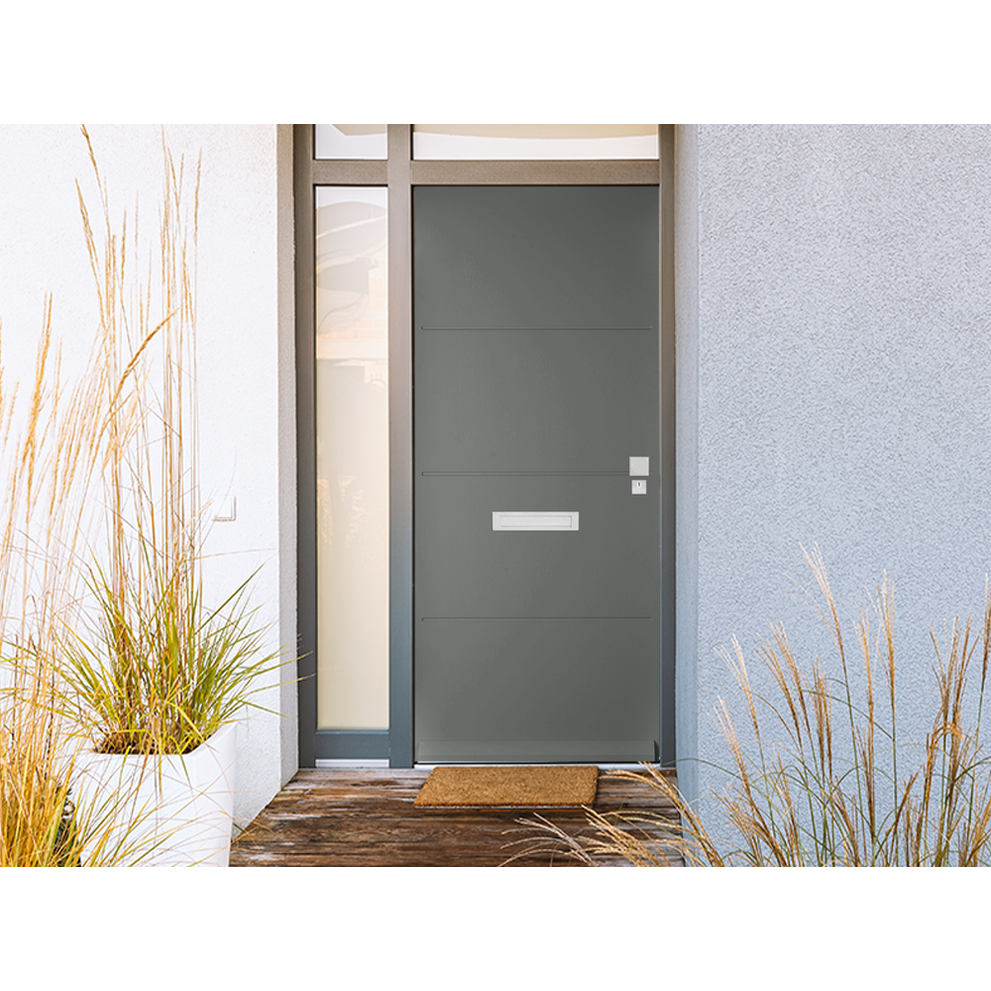 De voordeuren uit de serie Nova NEXT herken je aan de verticale of horizontale groeven. In deze serie kun je kiezen voor een dichte deur met groeven, maar je kunt ook kiezen voor één van de voordeuren met glas. De voordeuren met glas zijn er in vele variaties en met blank of satinato glas verkrijgbaar. Dit betreft deurmodel SKN 657.
