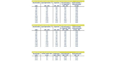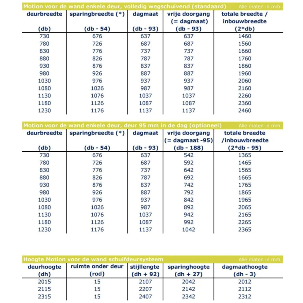 Deurbreedte: 730, 780, 830, 880, 930, 980, 1030, 1080, 1130, 1180, 1230 mm