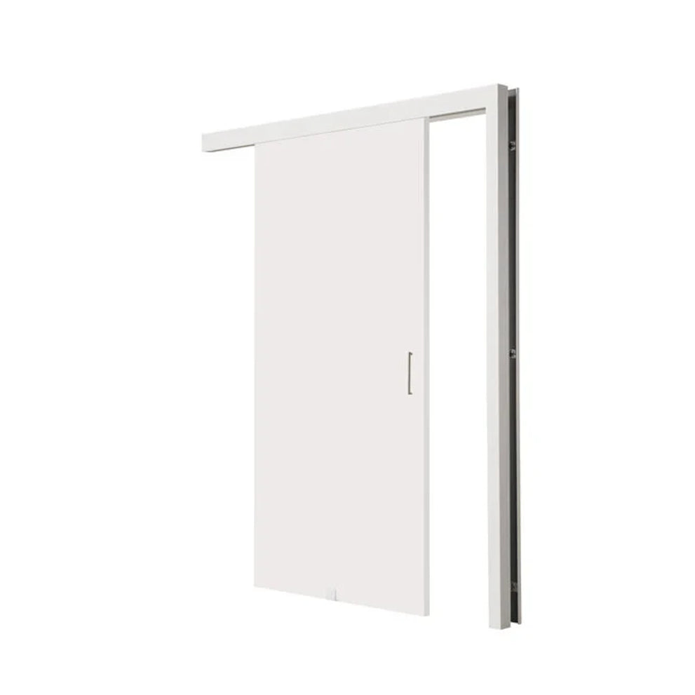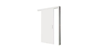 Enkeldeurs en dubbeldeurs met wandomvattend kozijn. Het systeem is altijd geschikt voor een volledig wegschuifbare schuifdeur.