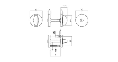 Deze set ronde rozetten met toilet-/badkamersluiting zijn uitgevoerd in aluminium en voorzien van een zwarte coating. De rozetten hebben een diameter van Ø50 mm en zijn voorzien van nokken, waardoor ze beter op hun plek worden gehouden. Dit product wordt per paar geleverd.