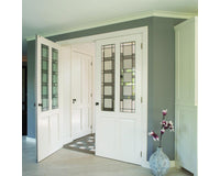 Binnendeur van hout met facetprofilering. Voelt zich daardoor thuis in elke interieurstijl. Leverbaar met verschillende glassoorten waaronder facet geslepen en glas in lood. Standaard wit gegrond. Afgelakt in alle kleuren mogelijk. Prijs is exclusief: beslag, hang- en sluitwerk.