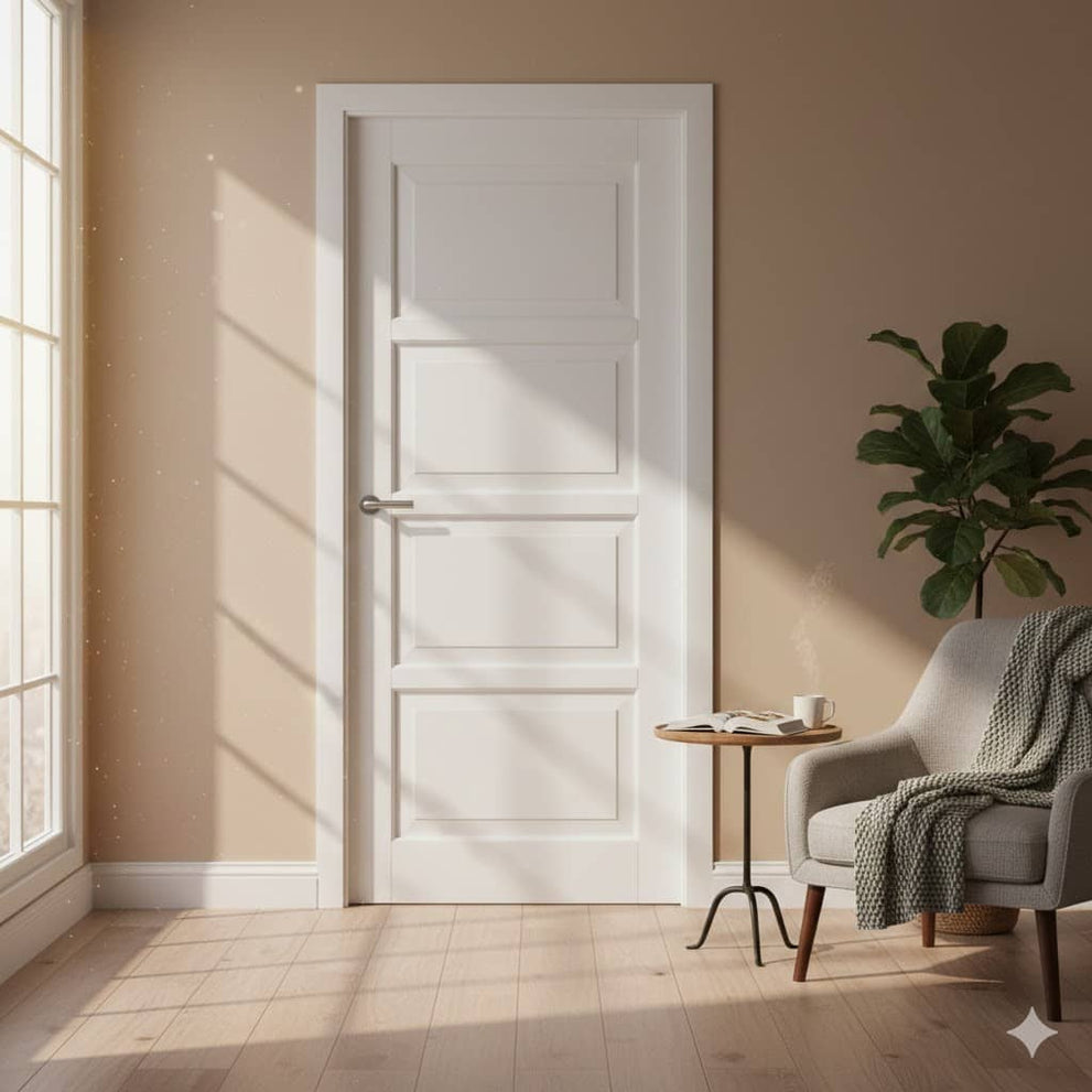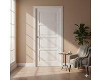 Binnendeur van hout met facetprofilering. Past in elke interieurstijl. Leverbaar met verschillende glassoorten. Standaard wit gegrond. Afgelakt in alle kleuren mogelijk. Prijs is exclusief: glas, beslag, hang- en sluitwerk.