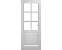 Binnendeur van hout met facetprofilering. Past in elke interieurstijl. Leverbaar met blank, mat of mat gelaagd glas. Blank en mat glas ook verkrijgbaar met facet geslepen rand. Standaard wit gegrond. Afgelakt in alle kleuren mogelijk. Prijs is exclusief: glas, beslag, hang- en sluitwerk.