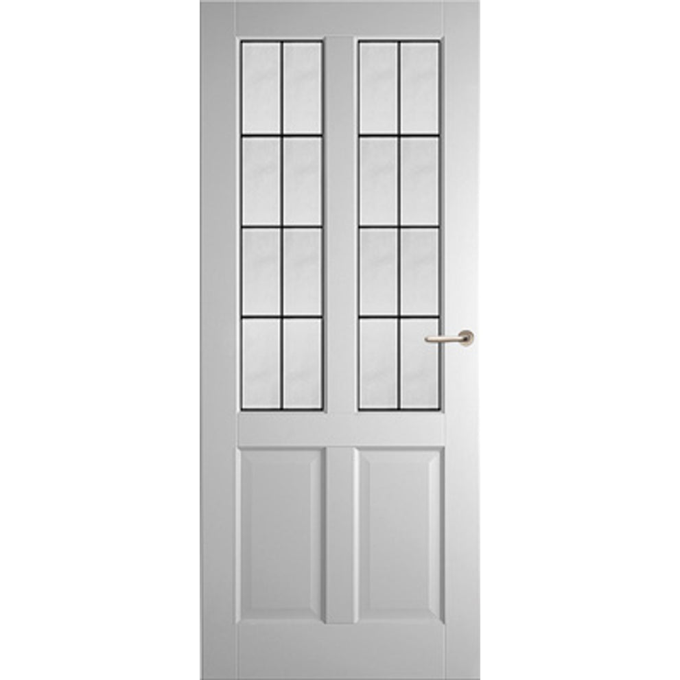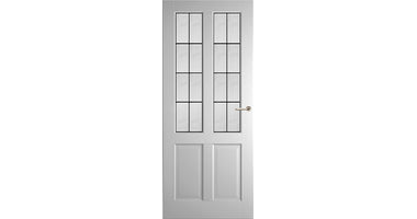 Binnendeur van hout met facetprofilering. Voelt zich daardoor thuis in elke interieurstijl. Leverbaar met verschillende glassoorten waaronder facet geslepen en glas in lood. Standaard wit gegrond. Afgelakt in alle kleuren mogelijk. Prijs is exclusief: beslag, hang- en sluitwerk.
