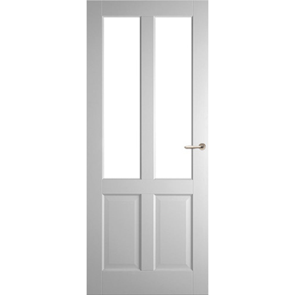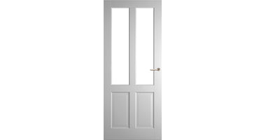 Binnendeur van hout met facetprofilering. Voelt zich daardoor thuis in elke interieurstijl. Leverbaar met verschillende glassoorten waaronder facet geslepen en glas in lood. Standaard wit gegrond. Afgelakt in alle kleuren mogelijk. Prijs is exclusief: beslag, hang- en sluitwerk.