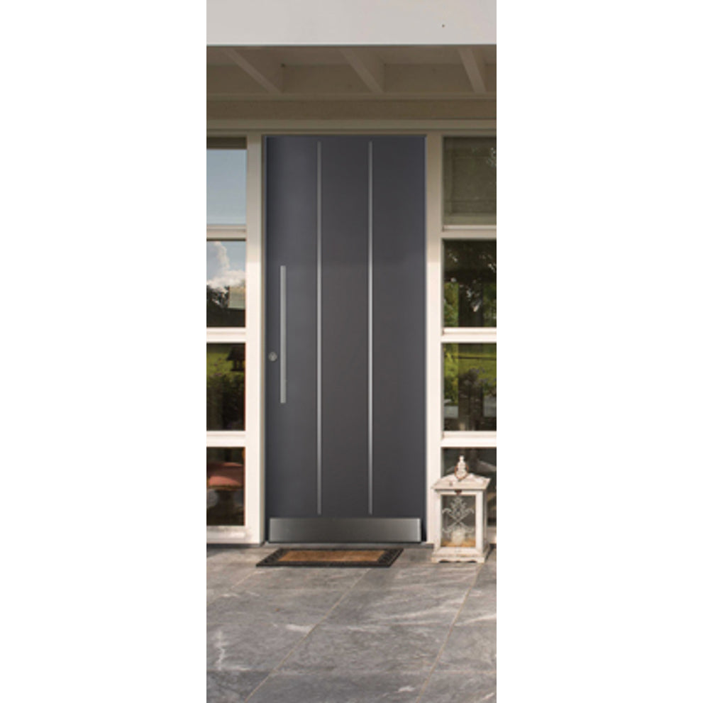 De Weekamp WK2021 TriComfort® voordeur bestaat uit hardhouten randhout en een geïsoleerde kern met Medite® Tricoya® Extreme toplaag voor een strak en glad oppervlak. Deze solide voordeur is voorzien van RVS-weldorpel en heeft een moderne uitstraling zoals meer Weekamp voordeuren  dat hebben.